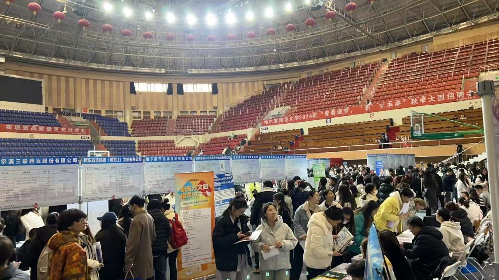 此次招聘会吸引了众多知名企业参会,涵盖了多个行业领域,汇聚了哈药集团世一堂制药厂、浙江新东方培训学校有限公司、哈工大附中等众多优质企业和名校。现场气氛热烈,求职应聘活动有序开展。此次招聘会为毕业生精心提供充足的就业岗位,实现专业与企业对接。与此同时,辅导员老师曹智同毕业生交流沟通,进一步了解了毕业生的就业意愿,准确掌握了市场调度和供需关系平衡。