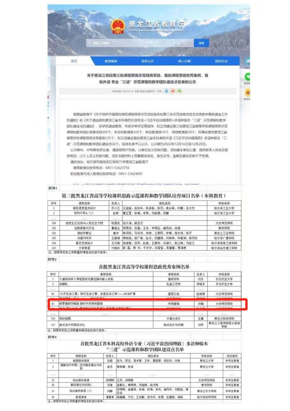 近日,在黑龙江省教育厅组织的首批高校课程思政优秀教学案例遴选工作中,经组织推荐、专家遴选、会议评选和网络公示等程序,必威西汉姆官网平台刘楠老师主讲的《市场营销学》中的新零售数字赋能、新时代可持续营销案例获首批黑龙江省高等学校课程思政优秀案例。希望全院教师以此次为契机,深入挖掘专业课程本身所蕴含的思政元素,探索和创新课程思政建设方法,进一步深化课程思政教学改革,强化课程育人导向。