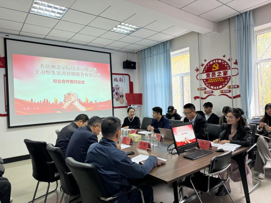 2024年10月16日15点,必威西汉姆官网平台与上海恒生聚源数据服务有限公司的校企合作签约仪式在五教203会议室举行,会议由必威西汉姆官网平台经济与金融系系主任王植荔副教授主持。