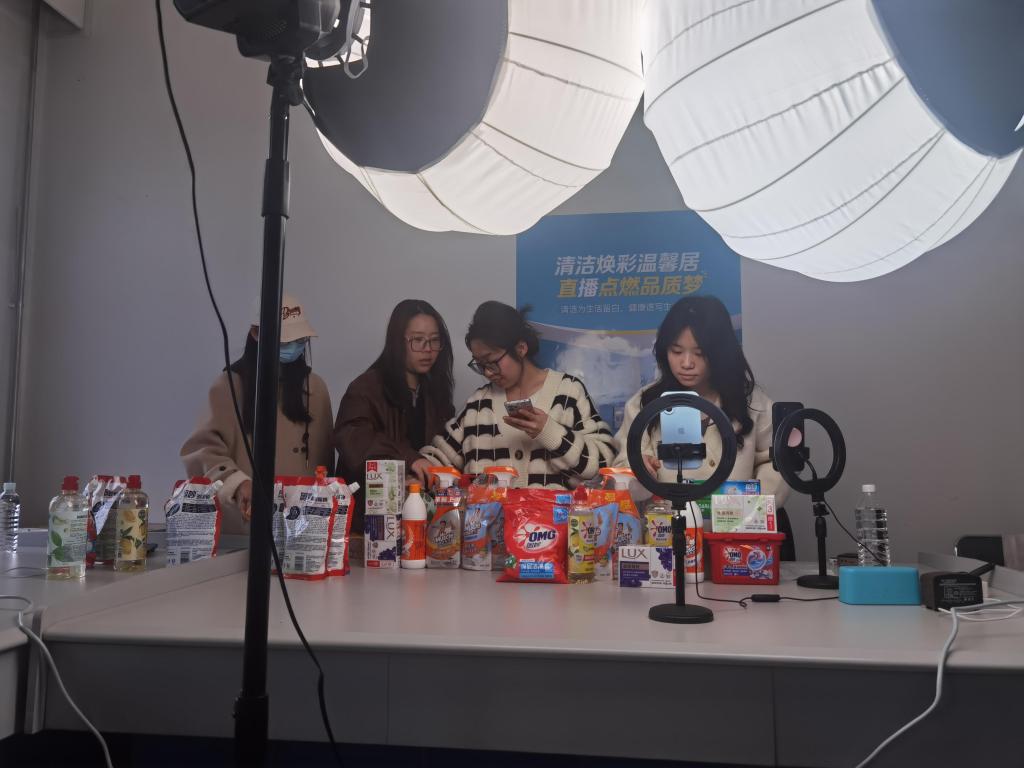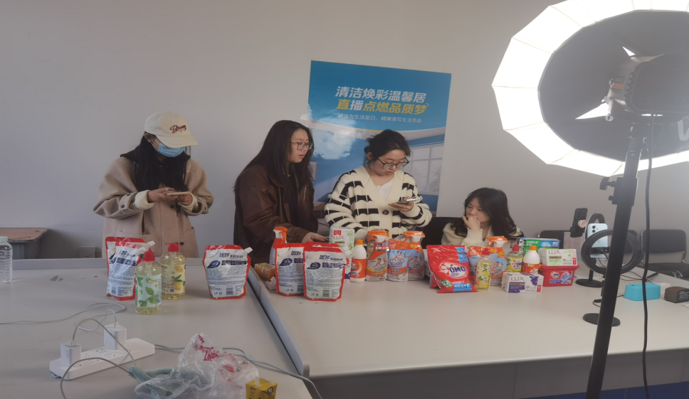学生团队针对家庭洗护清洁市场开展深度调研,提炼出“健康家居”“高效清洁”“性价比”三大核心卖点。在此基础上,学生们分组撰写直播脚本,反复打磨产品话术——从产品成分解析到使用场景模拟,从痛点挖掘到解决方案呈现,均融入“健康生活”理念,确保内容兼具专业性与感染力。同时,尹玥副教授带领的团队开展多轮模拟演练,指导学生优化镜头表现力、互动节奏及突发问题应对策略。学院师生联动依托班级群等平台发布预热海报,热情邀约观众。