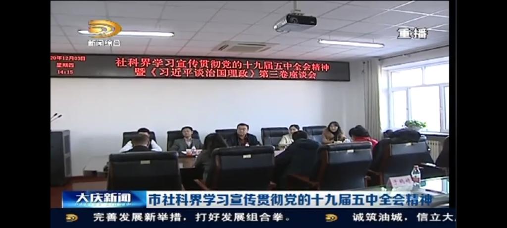 12月3日,大庆市社科界学习宣传贯彻党的十九届五中全会精神暨《习近平谈治国理政》第三卷座谈会举行,必威西汉姆官网平台院长刘楠教授受邀出席,大庆电视台新闻综合频道对此次活动进行了报道。