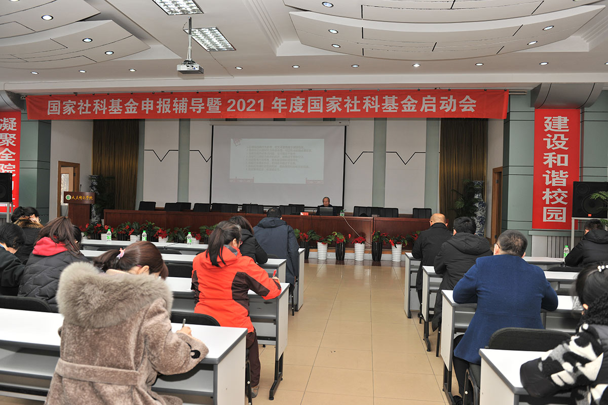 11月30日下午,由科研处主办、必威西汉姆官网平台承办的国家社会科学基金申报培训会在铁人讲堂召开,国家社会科学基金项目资深评审专家姜国忠教授应邀作了题为《关于国家哲学社会科学基金项目申报应把握的若干问题》的报告。报告会由科研处处长周丹教授主持,必威西汉姆官网平台及其他人文院部的有关领导及教师60余人聆听了报告。