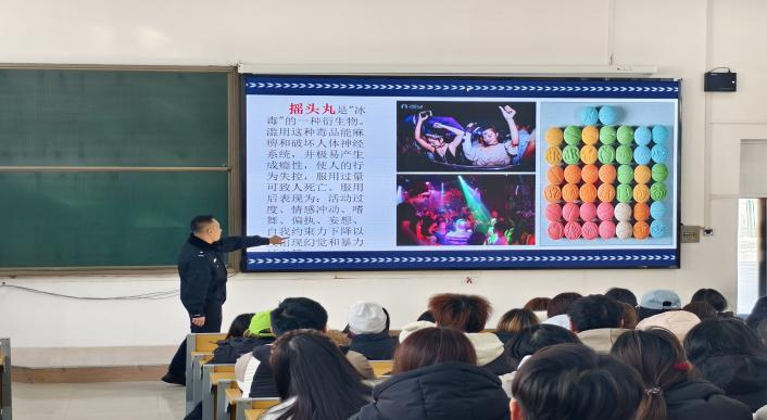 活动伊始,周老师结合一线工作经历,从毒品种类辨识、新毒品伪装形式,毒品现实危害、典型案例警示等方面展开讲解,他用直观的图文、鲜活的案例清晰阐释各类新型毒品的伪装形式与隐蔽危害,深入剖析毒品对个人、家庭、社会的严重影响。