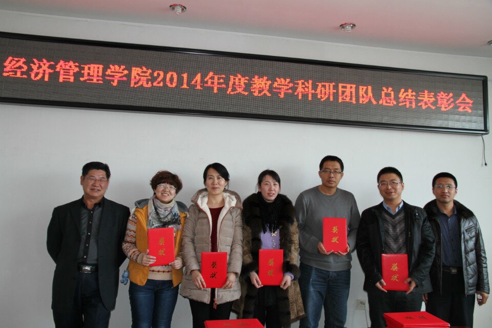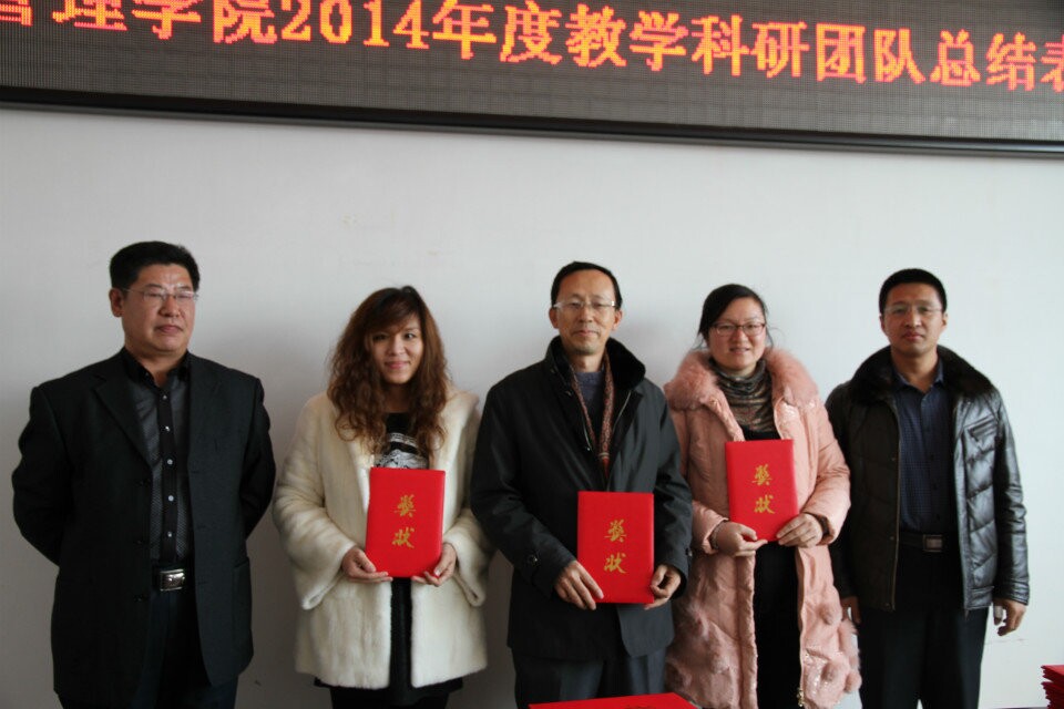 会上,孔若东书记宣读了2014年度学院教学科研工作奖励的表彰通报。必威西汉姆官网平台院长张平,院长助理吴俊江、院长助理刘楠、以及院长助理邬德林为获得各级各类教学科研奖励的团队及教师颁发了荣誉证书。