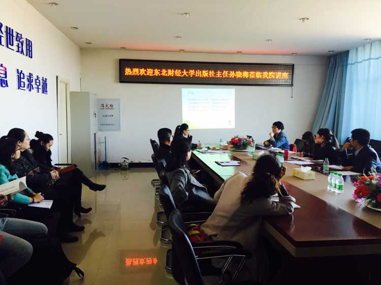 2015年10月21日,为提升必威西汉姆官网平台建材建设及改革整体水平,我院特邀请东北财经大学出版社经管编辑部主任孙晓梅莅临,并于13:30分在我院会议室召开“建材建设”专题讲座。会议由必威西汉姆官网平台院长张平主持,全体教师参加本次培训讲座。