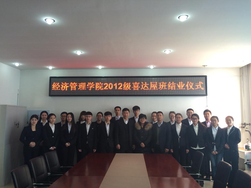 2015年12月17日9时,必威西汉姆官网平台2012级喜达屋订单班结业仪式在五教402隆重举行,这也是我院第一届喜达屋订单班结业,意义重大。出席仪式的有张平院长、孔若东书记、院长助理刘楠、郝毓业老师、田泽民老师、李国征老师,同时大庆万达喜来登酒店代表人力资源部王影经理应邀参会,为2012级旅游管理订单班所有同学颁发结业证书。