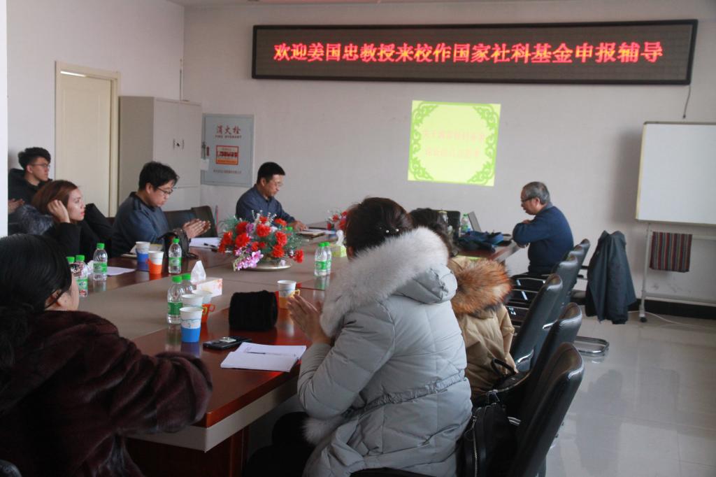 会上,姜国忠教授以“关于国家社科基金项目论证的几点思考”为题,结合自身宝贵经验和体会,用项目案例方式从数据表填写、项目选题、课题论证三个方面详细介绍了国家社科基金项目申报的相关问题,特别是针对课题论证七个方面的撰写内容、写作技巧、注意事项进行了重点分享;突出介绍了项目选题技巧、国内外相关研究的学术史梳理及研究动态、本课题研究的总体框架、研究基础等核心内容的写作方法;同时姜国忠教授还介绍了近几年国家社科基金青年项目中标情况,鼓励年轻教师一定要积极申报国家社科基金项目。