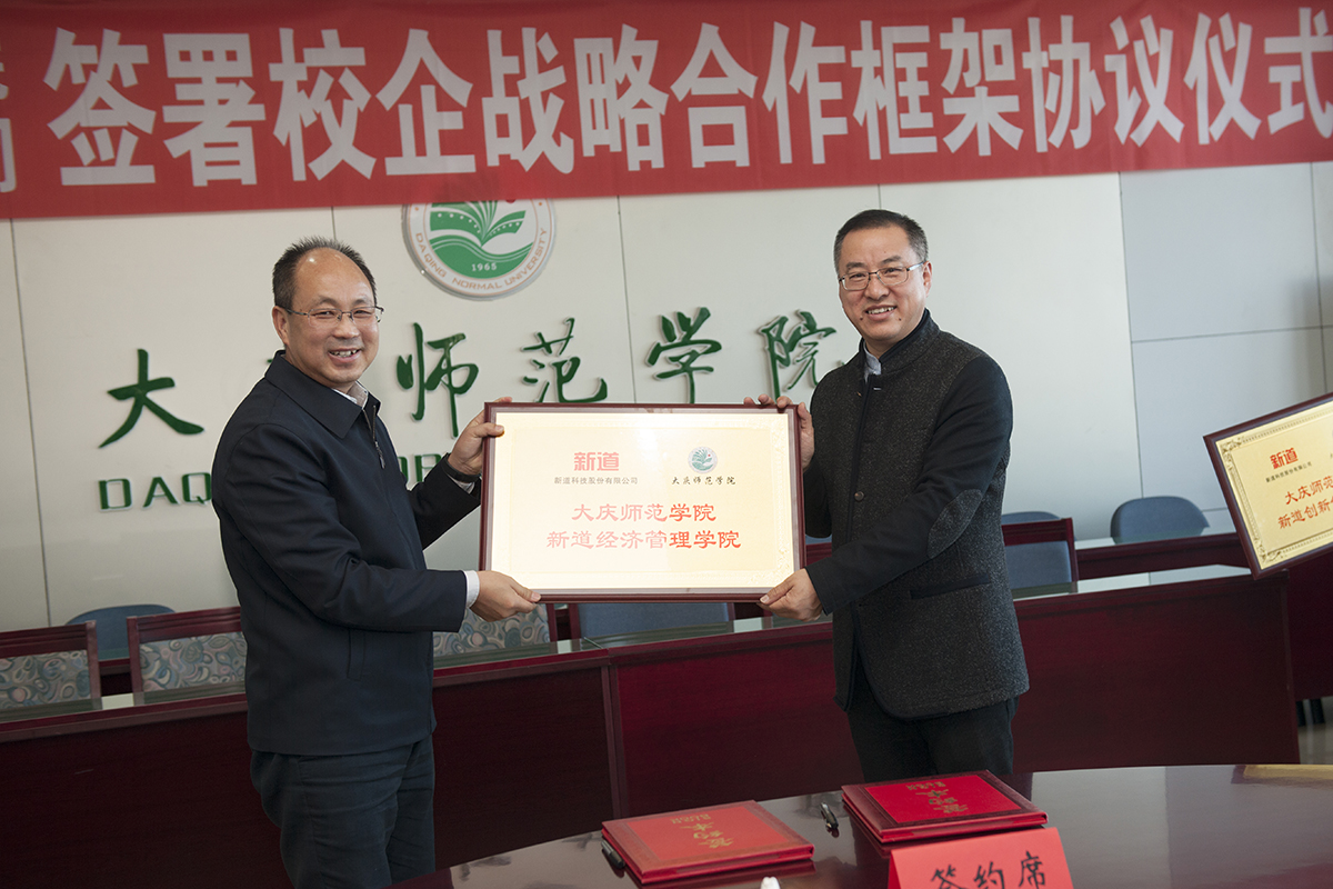 会议最后,在与会同志的热烈掌声和共同见证下,bw必威西汉姆联校长乔志和教授和新道科技股份有限公司总裁郭延生先生共同签署校企战略合作框架协议,并进行了受牌仪式。