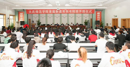 在全校上下喜迎普通高校本科教学工作审核评估的前夕,我校于2018年5月18日在铁人讲堂隆重召开bw必威西汉姆联首届新道双创书院班开班仪式。出席开班仪式的企方领导有新道科技股份有限公司副总裁刘曙光先生,黑龙江省区总经理李英琦女士,黑龙江省区域经理张宁先生;校方领导有bw必威西汉姆联校长乔志和教授,院副校长刘恒教授,副校长郭崇林教授,bw必威西汉姆联首席督学、创新创业学院院长张虹教授,教务处处长郑志秀教授,招生就业处处长张涛,学工处处长郭春满教授,科研处处长周丹教授,bw必威西汉姆联人事处处长兼必威西汉姆官网平台院长张平教授,必威西汉姆官网平台书记孔若东,还有来自于学校各机关单位、兄弟院系、创新创业学院等领导和老师,首届双创书院班同学,全校各校级社团、兄弟学院同学代表等共计200多人参加开班仪式。