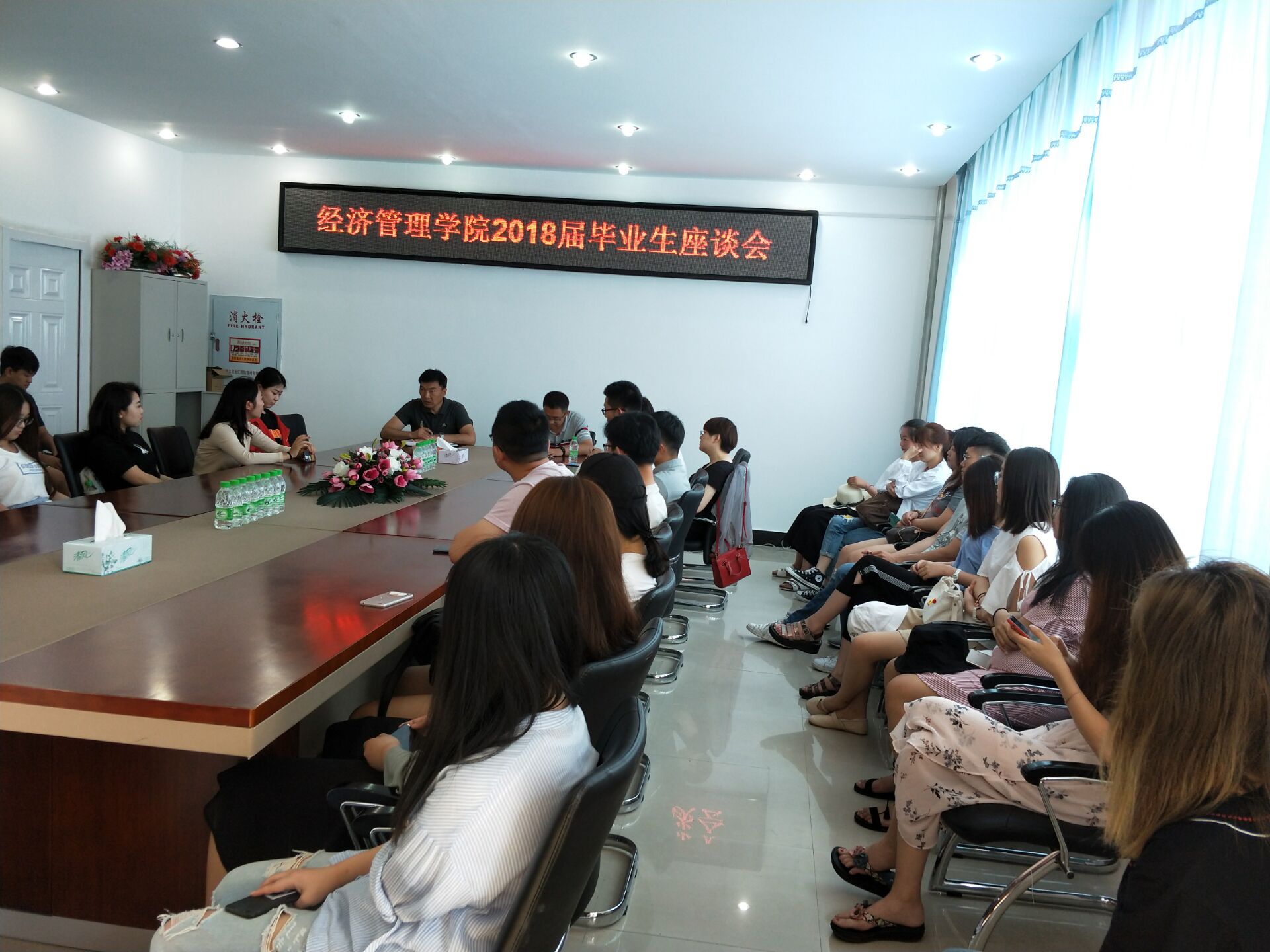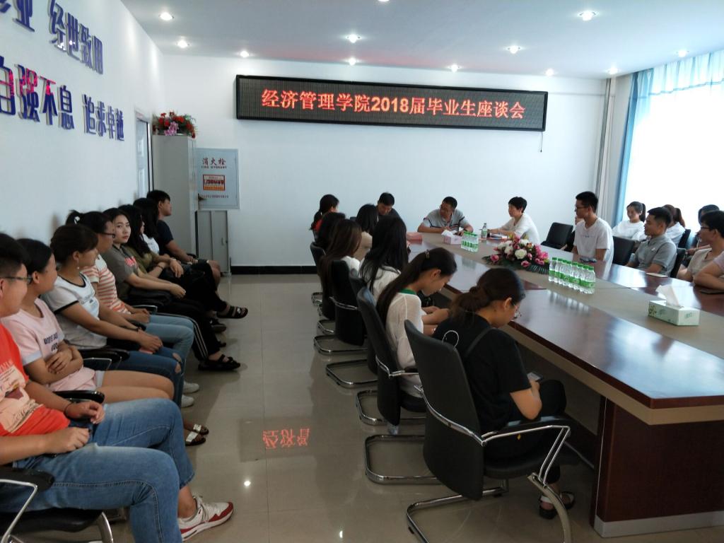 2018年6月22日8:30,必威西汉姆官网平台在五教402召开2014级毕业生座谈会,学院党总支书记孔若东、院长助理刘楠、市场营销系主任尚德萍、旅游管理系主任车鑫等参加会议,2014级各专业学生代表共计近40人参加会议。