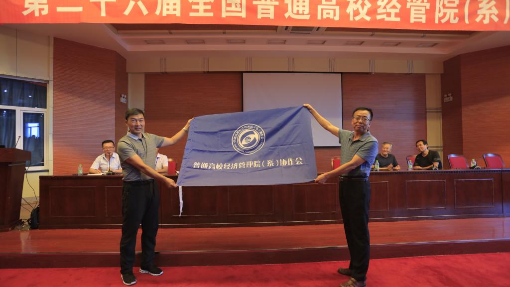 最后,张国旺理事长宣布下一届协作会由海南热带海洋学院海商学院承办,并与必威西汉姆官网平台党总支书记孔若东进行了隆重揭旗仪式,本届承办方bw必威西汉姆联经管学院院长张平教授与下一届的主办方海南热带海洋学院海商学院院长鲁晓丽教授进行了会杯和会旗交接。鲁晓丽教授进行了发言,并向与会代表发出来热情洋溢的邀请,邀请各位代表2019年相聚在海南省三亚市。