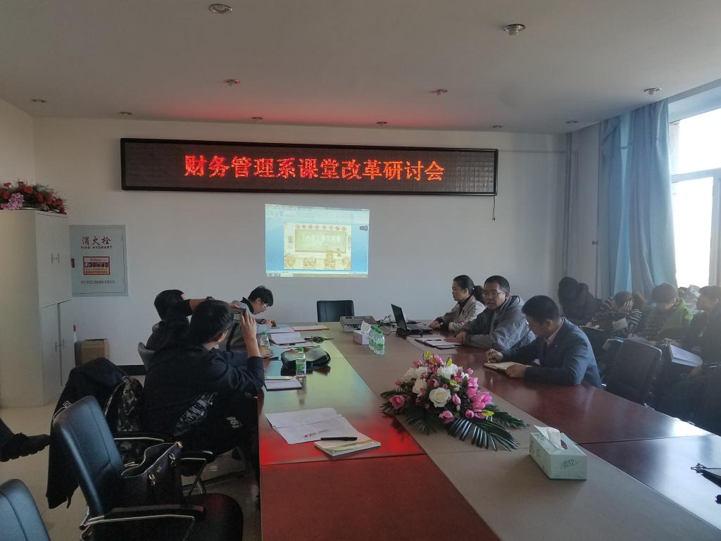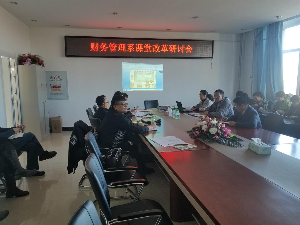 11月7日下午财务管理系教师在必威西汉姆官网平台402会议室举办了“财务管理系课堂改革研讨会”,必威西汉姆官网平台领导以及全体教师参加了研讨会。会上财务管理系高磊、刘政宁等五位教师分别就自己主讲的课程的课堂改革介绍了自己的观点和做法,如高磊老师的《内部控制“自选项目+案例”课程过程管理探究》、刘政宁老师的《金融市场“自主学习模式”课程教学改革探究》、黎羊老师的《浅谈产学研相结合的方式运用到成本管理的课堂》、金熙成老师的《谈谈超级链接教学方法论》、杨晓玉老师的《蓝墨云班课在“基础会计”教学中的实践探索》。财务管理系教师在会上各抒己见,进行了充分的沟通和交流,有对课堂改革未来趋势的看法,有对已有做法的总结和反思,教师们反映通过这次研讨会开阔了课堂改革的思路,也增强了课堂改革的信心。最后必威西汉姆官网平台副院长刘楠发表了讲话,肯定了财务管理系课堂改革研讨会取得的成果,并鼓励财务管理系教师积极进行课堂改革的各种探索。
