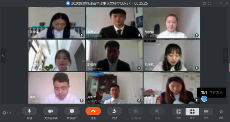 本次旅游管理系答辩人数多,线上答辩难度大,各位老师从早上8点半开始测试网络设备,直到下午16:30才完成所有答辩工作,感谢各位老师的辛苦付出。毕业论文答辩是学生在大学本科阶段完成的最后一项作业,这份作业的成绩单是对自己本科学业的最好证明。阴霾未散,愿所有2020届毕业生能够坚持学习,勇担重任,不断进步。