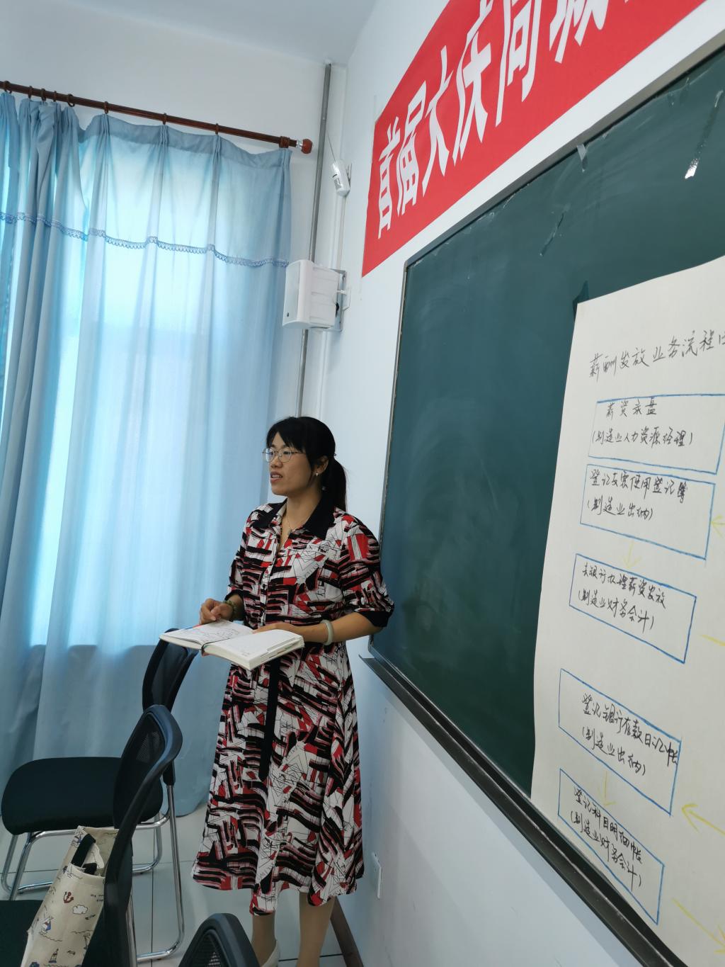 每位试讲教师进行15分钟说课,针对本学期课程内容、教情学情、教学方法及线上线下混合式教学思路进行阐述。例如,彭良英针对《经济法》课程的学生专业背景对内容进行删减;郝毓业老师《旅游市场营销》课程将实践教学环节改在线上进行;薛丹老师《旅游经济学》学时变化较大,针对专升本学生做出了内容深度方面的调整;王家兴老师《旅行社管理》课程在教材选用方面进行了拆分尝试;车鑫老师采用任务式教学法,以4个任务串讲《前厅与客房管理》所有教学内容。