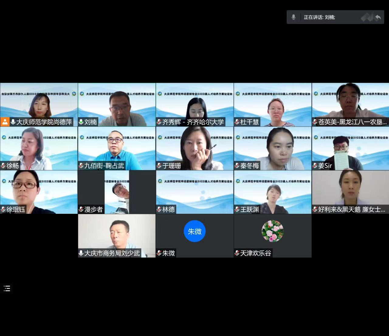 2022年7月15日13:30-15:30,市场营销系召开了2022级人才培养方案论证会,会议采用腾讯会议的方式,邀请了政府、合作企业和高校的专家10位,大庆市商务局电子商务科科长刘少武、齐齐哈尔大学市场营销系主任齐秀辉、东北石油大学营销与旅游系主任徐畅、黑龙江八一农垦大学市场营销系主任苍英美、北京巨量引擎网络技术有限公司巨量部于珊珊、北京市好利来&黑天鹅餐饮管理有限公司招聘部负责人廉美琦、天津欢乐谷人事部经理刘喆、哈尔滨润牛商业有限公司人力资源部主任王雪、大庆九佰街网络科技有限公司董事长鞠占武10专家和必威西汉姆官网平台行政负责人刘楠、教学负责人李媛媛、科研负责人孙伟仁以及市场营销系全体教师参加了论证会,会议由市场营销系主任尚德萍主持。