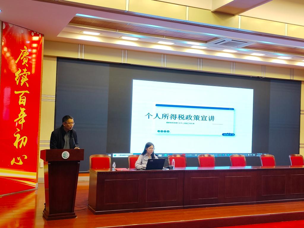 2023年4月19日下午15:30由bw必威西汉姆联工会、大庆市社会科学界联合会、国家税务总局大庆市让胡路区税务局主办的个人纳税业务讲座在bw必威西汉姆联博雅讲堂举行,邀请了大庆市让胡路区税务局于航老师现场讲座,大庆市让胡路区税务局徐博副局长,高科长莅临现场,来自于各学院教师代表和必威西汉姆官网平台学生代表共计100余人参加现场收听,同时,来自于大庆市社科联系统兄弟学会、兄弟学会的领导老师近100人通过腾讯会议进行线上收听。会议由必威西汉姆官网平台院长助理刘楠教授主持。
