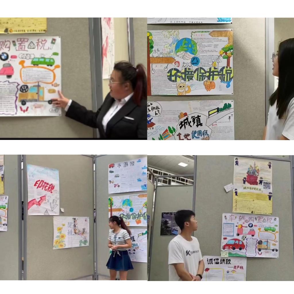 2023年6月7日14时,必威西汉姆官网平台在图书馆一楼大厅举行税收政策宣传活动。必威西汉姆官网平台教学院长李媛媛、主讲教师高磊副教授、让胡路区税务局税务专员共同参加了本次活动。此次活动是《中国税制》课程思政教学内容的集中展示活动。活动共分为三个环节,第一个环节由高磊老师介绍本次活动的主要内容、活动目的和意义,第二个环节由学生代表讲解宣传海报制作的主要内容和宣传目的,本环节共有10个小组代表对小组制作的税收宣传海报进行讲解,本次活动共有20个学习小组制作了宣传海报,海报内容涉及我国主要税种中的增值税、所得税、消费税、资源税、车辆购置税等,学生通过海报向同学们介绍什么是增值税,增值税在国民经济发展中的重要性,我国开征的资源税都对哪些资源征税,新开征的环保税政策制定背景是什么,等等。第三个环节由税务局税务专员对同学们做的宣传内容进行点评,税务专员给与同学们此次活动高度评价,认为学生们的宣传活动特色鲜明,内容丰富,很好的宣传了国家税收在经济发展中的重要性,并提出中肯的建议。认为这类活动可以成为税务局与我校长期合作开展的活动。