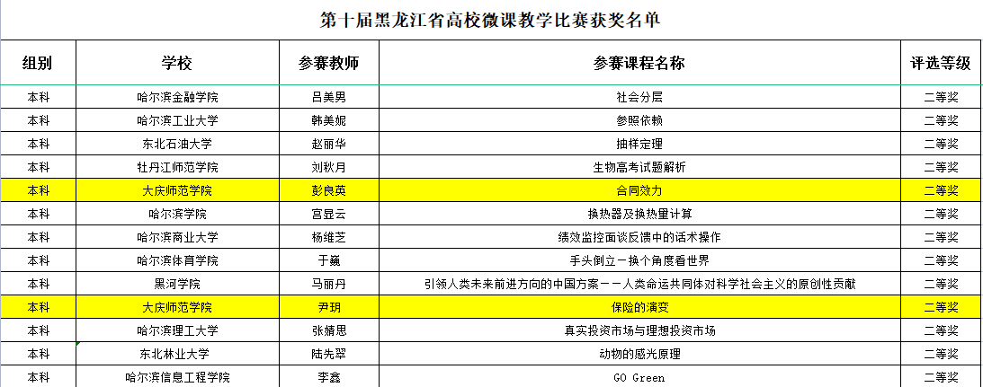 在2023年第十届黑龙江省高校微课教学比赛活动中,必威西汉姆官网平台彭良英、尹玥两位老师双双获本科组二等奖,我院教师连续三年在黑龙江省高校微课教学比赛中有所收获,并将以本次获奖为契机,不断促进信息技术与学科教学融合,充分发挥信息技术对高等教育发展的引领作用,推动我院教师专业发展和教学能力提升,号召全体青年教师不断更新教育观念,不断加强教学内容与教学方法的改革研究,促进我院教学质量的不断提高