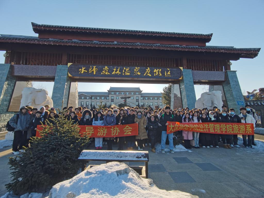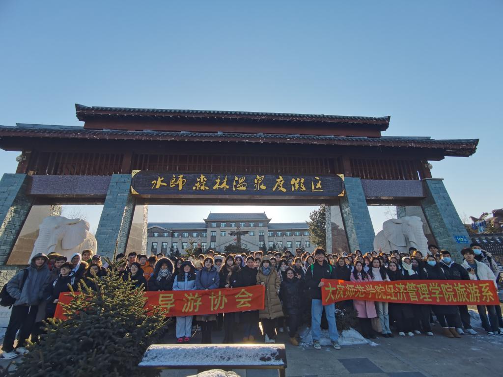 2022级旅游管理专业本科班及2022级旅游管理专升本班学生本学期开设有旅游资源调研课程,为了真正地将旅游资源理论知识与实践相结合,旅游管理系郝毓业老师依托大庆市导游协会组织学生于2023年12月09日赴国家4A级齐齐哈尔水师森林温泉度假区开展旅游资源调研。王家兴老师、赵炳森老师作为指导教师一起前往景区调研。调查过程分为旅游资源单体调查、旅游资源评分、旅游资源项目体验等,依据这些环节,分组来完成最终的旅游资源调查报告撰写。旅游资源调查各环节将理论与实践进行了结合,学生也对调查过程中发现的问题给出了建议。