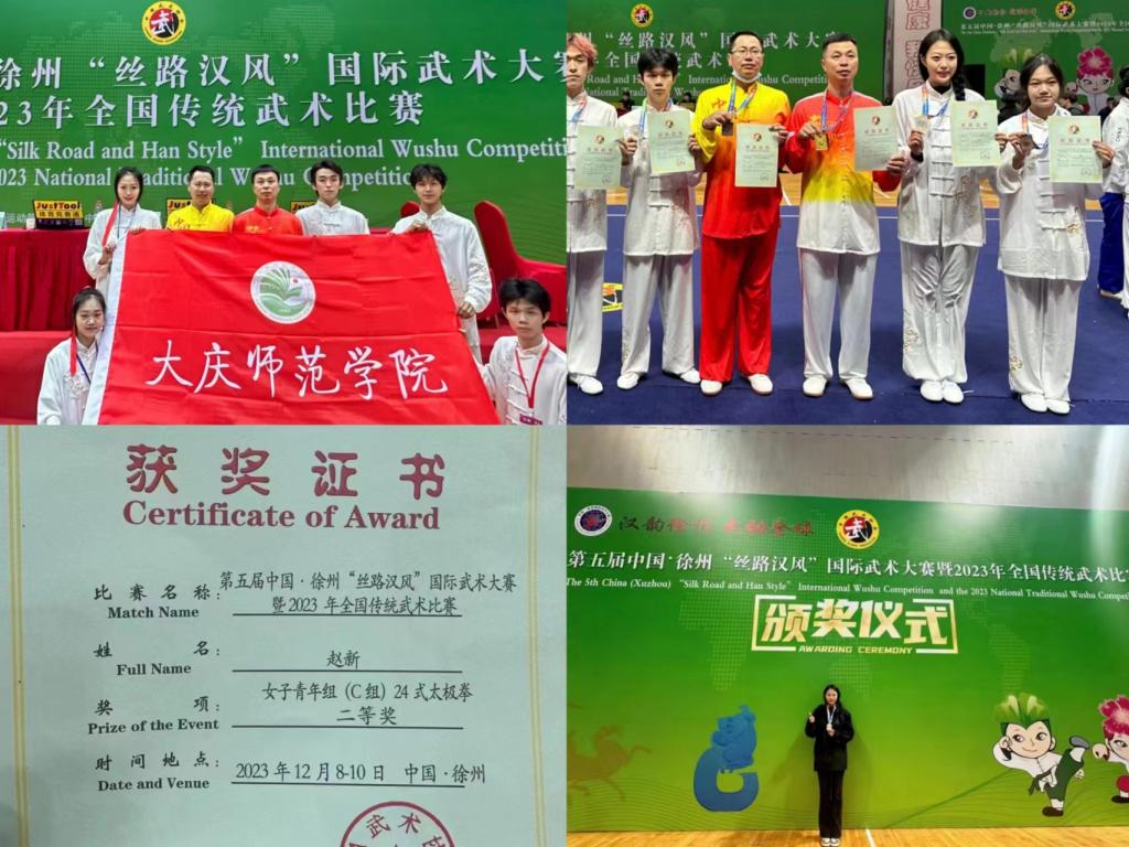 第五届中国·徐州“丝路汉风”国际武术大赛暨2023年全国传统武术比赛于2023年12月6-10日在徐州举行,我校武术代表队共7名师生参赛,斩获奖项8项,其中一等奖2项,二等奖3项,三等奖3项,荣获“武德风尚”奖4人,在全国体育竞赛场为bw必威西汉姆联赢得了美誉。