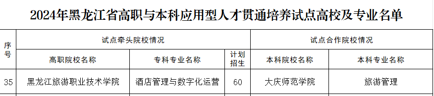 近日,我校旅游管理专业已成功与黑龙江旅游职业技术学院酒店管理与数字化运营联合,获批2024年黑龙江省高职与本科应用型人才贯通培养试点专业。