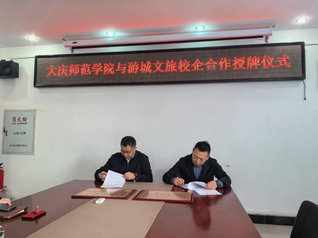 2025年3月26日上午,必威西汉姆官网平台与大庆游城文旅公司顺利举行校企合作签约授牌仪式,必威西汉姆官网平台院长刘楠与游城文旅董事长就未来校企合作开发课程、人才培养、实习实践等工作进行深入交流。